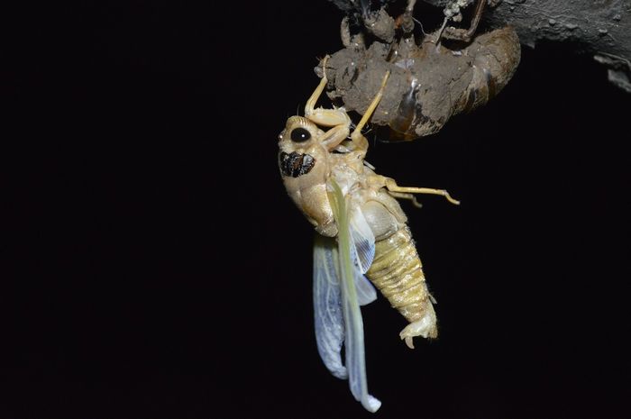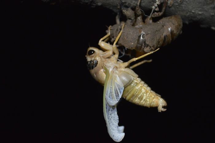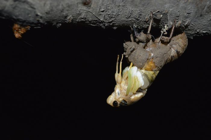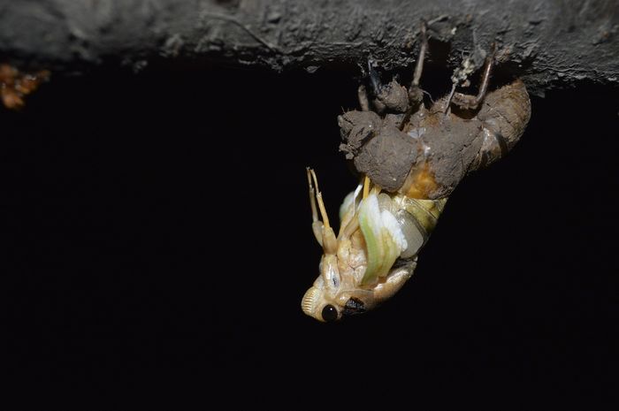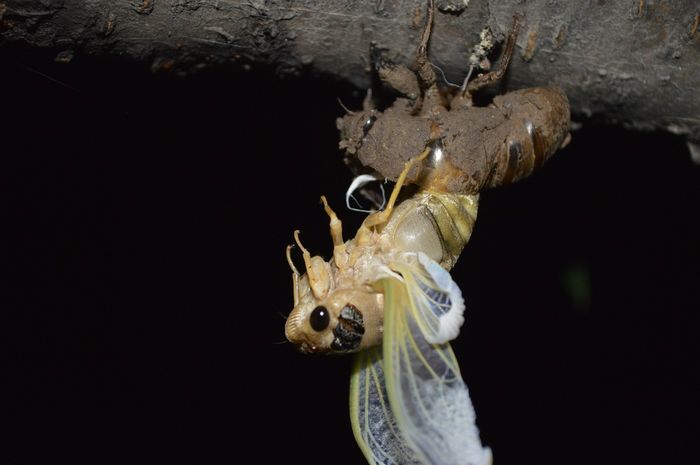 夏天,蝉出现了。在人来人往、被太阳暴晒的、被踩瓷实的一条条小路上,有一个个拇指大小的圆孔,这就是蝉的幼虫(爬叉)从地下爬回地面变成蝉的出洞口。在这之前,它要在地下蛰伏四年之久,而这个蜕变的过程竟也如此美丽。